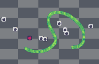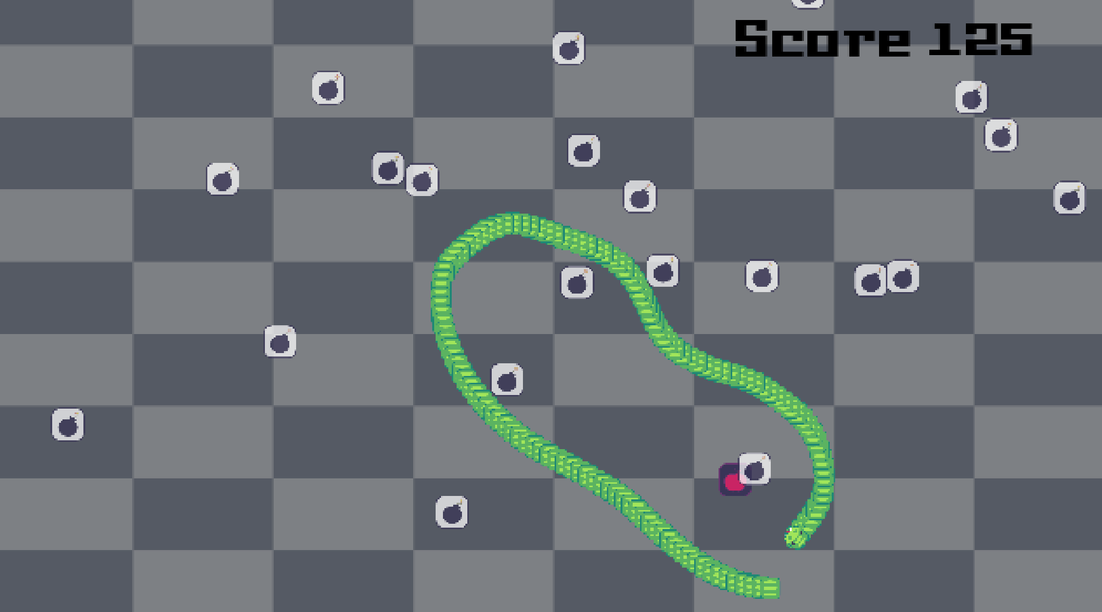 Guide your snake with the mouse and loop fully around apples to collect them and grow. Just touching them isn’t enough - you have to close the loop at the tail.